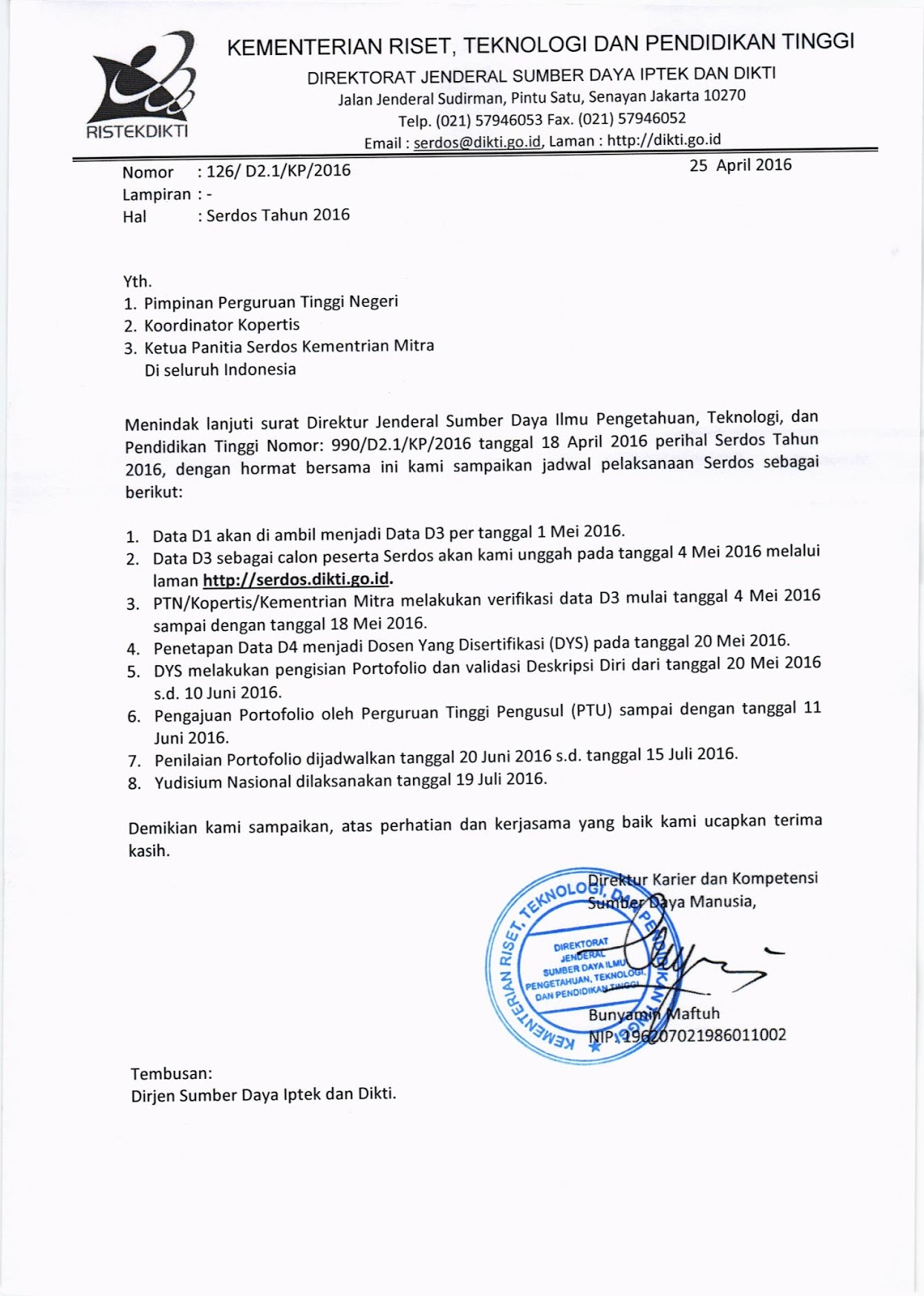 Jadwal Pelaksanaan Serdos 2016 Tuesday, April 26, 2016 Add Comment Bapak Ibu Dosen yang masuk ke dalam data D1 perhatikan jadwal pelaksanaan Serdos berikut ini: Share this post